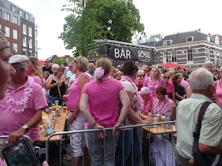 Hij heeft een heerlijk beschut plekje gevonden in de drukte en ligt daar rustig op ons te wachten. Na het welverdiende ijsje gaan we richting fiets. Eenmaal thuis blijk ik op beide hielen een blaar te hebben, maar de schade is beperkt, hoewel de blaar links best flink is. Mams heeft een blaar onder de bal van haar voet en de Wandelkerel heeft nergens last van. Op naar morgen!!!!
