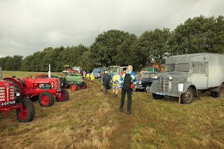 Na zo'n 5 km verlieten we het asfalt. We werden een parkeerplaats opgestuurd en kwamen langs een kiosk, waar een bandje speelde, waar diverse oude trekkers en landbouwwerktuigen stonden en waar de koffie, thee en een koekje klaar stond. Hoewel het er zeer gezellig uitzag, besloten we om toch maar door te lopen, het was nog maar een uurtje geleden dat we gezeten hadden.