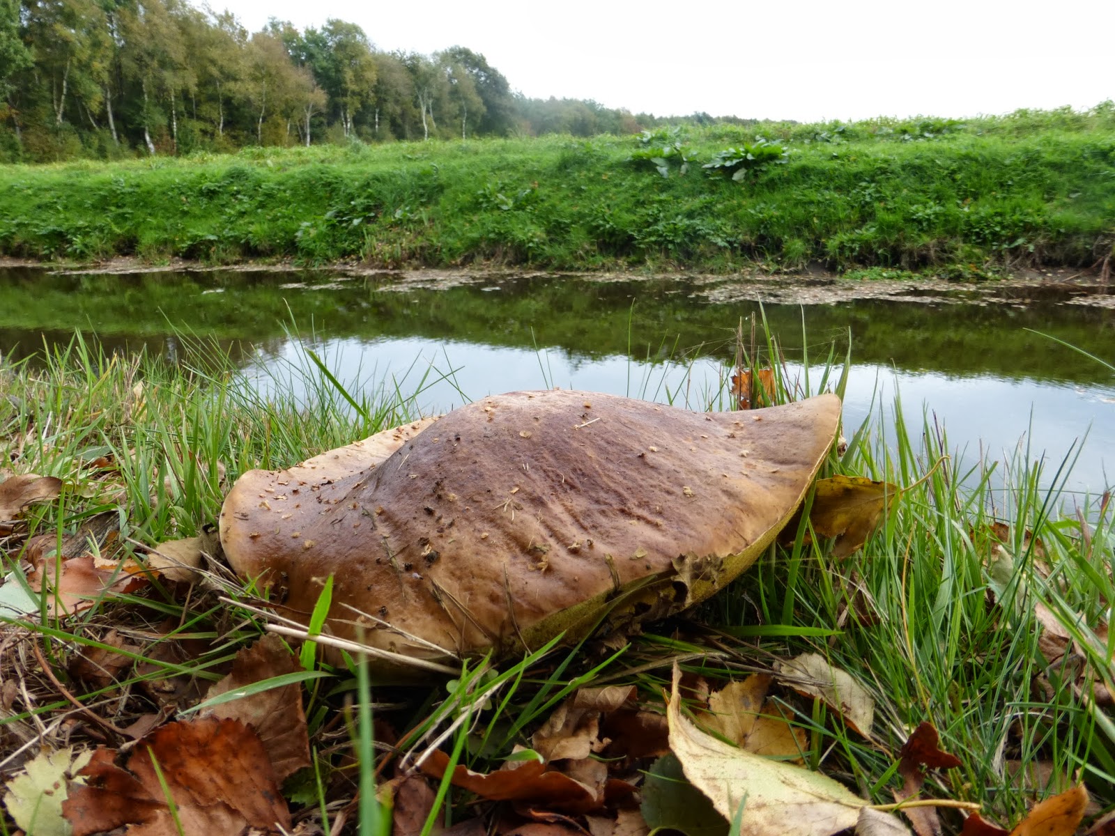 En bij de herfst horen paddestoelen. We kwamen er veel tegen, maar het duurde even voor de enige echte paddestoel tegenkwamen. Die rode met witte stippen. En toen we ze eindelijk vonden maakte Wandelmams (geheel toevallig, dat gaf ze zelf toe) onderstaande foto. En daar was ze dan weer zo trots op, dat ik het verzoek (in de vorm van een bevel) kreeg om te stoppen. Deze foto moest ik zien!!! En ik kan niet anders zeggen dan dat het een prachtfoto is!!!!!